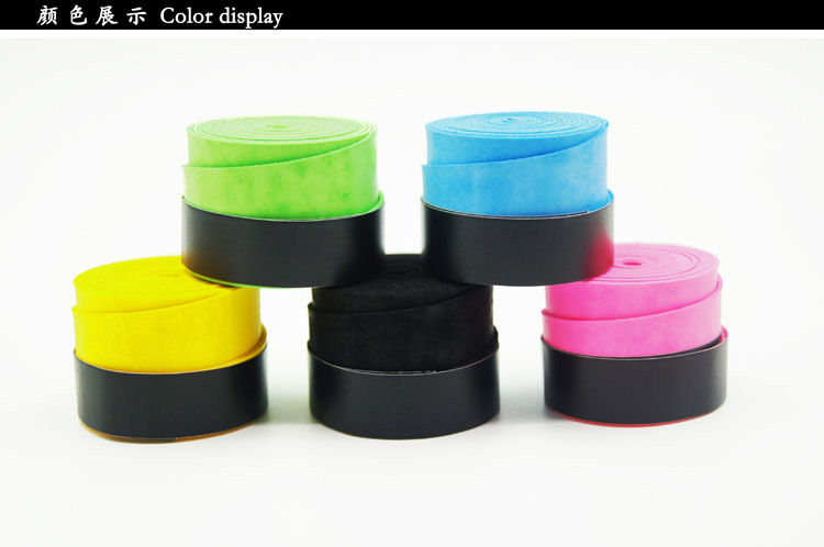 型號:磨砂-800 顏色:黑色,蘭色,紫色,黃色,紅色,桔色,灰色,熒綠,白色(多種顏色可以定制)。 規(guī)格:26X1100X0.8mm 產(chǎn)地:臺灣 材質(zhì):PU 功能:適中的粘性,PU材質(zhì),羽毛球拍,網(wǎng)球拍,釣魚桿,壁球拍等都可以用,100%優(yōu)質(zhì)成份,手感舒適,超級實用。 特點:粘性強,防滑性好,被汗水浸透后仍然保持較高的粘性,超強減震效果。 適應性:適應于手汗適中,又需要有粘性手感的球友。 使用注意:吸汗帶有兩面,有膜的是正面,纏時要把表面的PET保護膜撕掉,再纏在球拍上,最后用封口條固定好。另外,吸汗帶是消耗品,當粘性下降或表面磨破后需要及時更換吸汗帶。