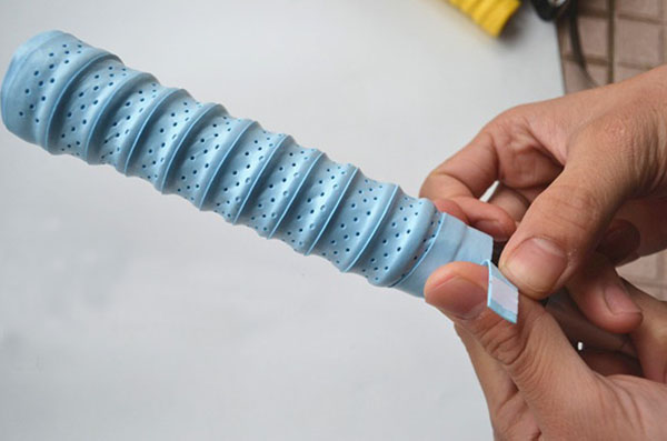 一只新的球拍,在拍柄上會有一柔軟的皮包裹著,它是為防止運動員在使用時因手部用力過大或時間太久而被拍柄磨出血泡或磨破皮。 所以建議大家在球拍纏上吸汗帶