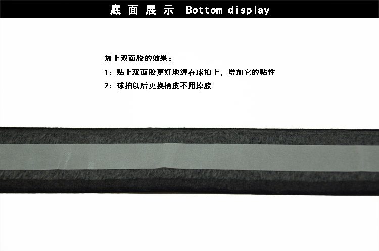 使用注意:柄皮有兩面,貼了雙面膠的是背面,纏時(shí)要把背面的雙面膠離型紙撕掉,再纏在球拍上,最后用封口條固定好。另外,柄皮是消耗品,表面磨破后需要及時(shí)更換手膠。